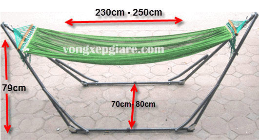 Chất liệu lưới : Khung võng chưa gồm lưới. Tham khảo các loại lưới võng xếp giá rẻ tại đây: lưới võng giá rẻ